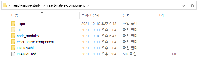 react-native-study/react-native-component 폴더에도 .git 폴더가 있다.