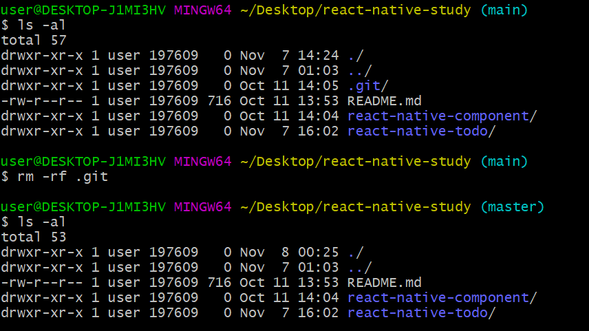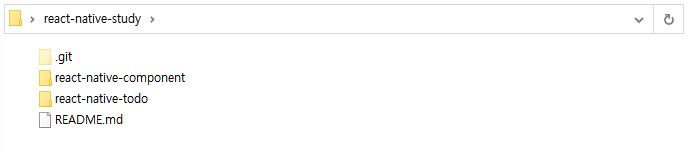 내 로컬 저장소의 폴더는 다음과 같다. react-native-study 에도 .git 폴더가 있고