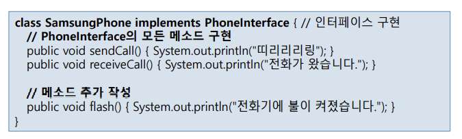 - PhoneInterface 인터페이스를 구현한 SamsungPhone 클래스