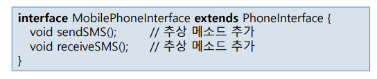 - 인터페이스를 상속하여 확장된 인터페이스 작성 가능