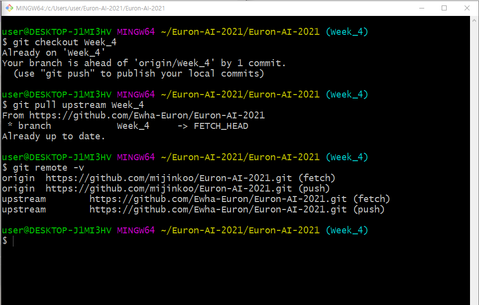 https://github.com/mijinkoo/2022-1-Euron-Study-Assignments GitHub - mijinkoo/2022-1-Euron-Study-Assignments: Euron 2기 스터디팀 예습·복습 과제 제출 Euron 2기 스터디팀 예습·복습 과제 제출. Contribute to mijinkoo/2022-1-Euron-Study-Assignments development by creating an account on GitHub. github.com 이 레포 mijinkoo/2022-1-Euron-Study-Assignments (포크한 레포)는 Ewha-Euron/2022-1-Euron-Study-Assignments (오리지널 레포)를 포크한 레포이다. 포크한 레로에..